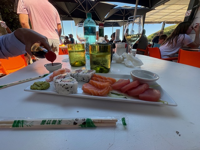 Vom Marine Hotel sind es gut 5 Kilometer zum Grotto Beach, eine Wanderung die sich lohnt. Der Ausblick auf den tosenden indischen Ozean ist gepaart mit viel Wind und einem guten Gefühl von Freiheit. Vorbei an Golfplätzen, traumhaften Häusern mit dem entsprechenden Meerblick, gelangt man schliesslich zum Grotto, wo eine coole Lunch-Location ordentliches Sushi auf die Teller bringt. Das Dutschies lädt zum Verweilen ein, gern auch über mehrer Stunden, in denen man so manches Glas Wein mit Blick auf den Strand ultra-relaxt zu sich nimmt. Zwischendurch ist eine Abkühlung im Meer möglich, aber das Wort Abkühlung kann man hier wirklich sehr ernst nehmen. Der indische Ozean ist so dermaßen kalt das wirklich nur die mutigsten den Sprung in das kühle Nass wagen.