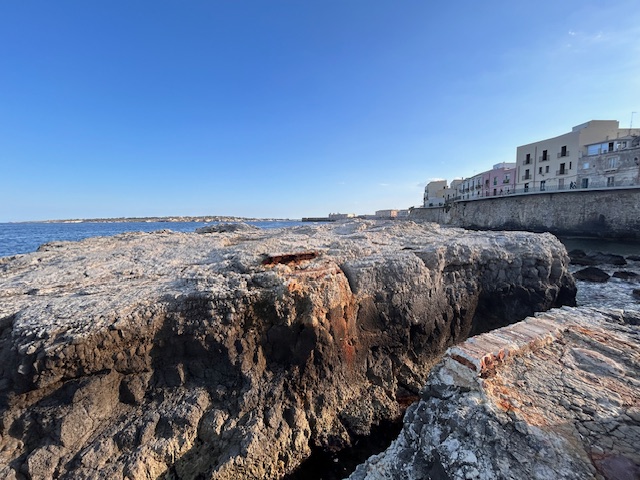 Die Stadt liegt malerisch am Ionischen Meer, dabei handelt es sich nicht nur um eine Badelocation. Vom Ursprung her ist es eine Insel und Festung die sich heute natürlich bis auf das Festland ausgebreitet hat. Auf dem Weg von Modica aus steuern wir erstmal eine wunderschöne Badebucht den Pantanello Beach an. Völlig unaufgeregt, 20 Kilometer vor den Toren Syrakus, der Blick leicht erhöht führt hinunter in die Bucht und lädt zum verweilen ein. Nach dem kühlen Nass geht es nach Syrakus, genau gesagt nach Orygia, so der Name der Halbinsel. Die verwinkelten Gassen mit dem Charme der Antike sind ein MUSS für jeden Besucher. Das Quatier ist ein Appartment direkt an der äussersten Ringstrasse mit einem traumhaften Blick auf das Meer und das Castello Maniace. Die Wohung ist 3 Nächte lang die Basis für weitere Ausflüge zum griechischen Theater der Region, der Kathedrale von Syrakus oder dem Archimede Museum. Das Auto lässt sich unweit der Altstadt in einer Tiefgarage parken, die 10 Minuten Rückweg zur Wohnung entlang der Küste sind ein Spaziergang, mit dem traumhaften Ausblick auf das blaue Ionische Meer.