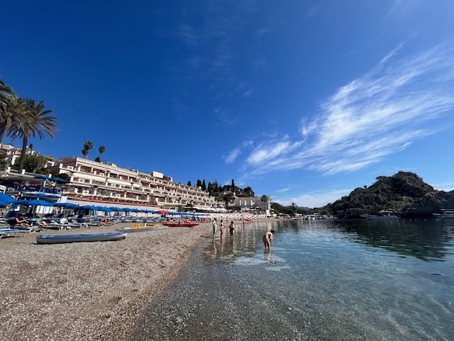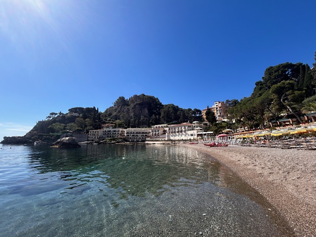 In gut 1:30 Stunden legt man die Fahrt zwischen diesen beiden Hotspots zurück. Taormina ist eine Stadt in den Hügeln der Küstenlandschaft, mit wunderschönen Aussichten auf den Vulkan Etna. Taormina gilt als eine der schönsten Städte Italiens und man tut gut daran besser vor Ort zu verweilen und „arbeitet“ sich an den grandiosen Sehenswürdigkeiten ab. Da wäre mal zu Beginn das antike Theater aus dem 2.Jahrhundert zu nennen. Hier wo früher u.a. Gladiatorenkämpfe vor 5000 Zuschauern ausgetragen wurden und der Blick über die Landschaft rüber zum Etna schweift, ist großes Kino garantiert. Wer dem klassischen Stadttrubel entfliehen will nimmt die Seilbahn runter ans Meer, denn rund um die Isola Bella gibt es zahlreiche Liegen zum chillen und kristallklares Wasser zum Baden. Am Abend findet sich in der Einkaufspassage von Taormina mit großer Sicherheit ein gutes Restaurant, allerdings sollte erwähnt werden das ein durchaus hoher Touristenzuschlag erhoben wird. Die Speisen mögen sie noch so einfach sein, sind wirklich teuer und manchmal in ihrer Portionsgröße eher ein schlechtes Preis- Leistungsverhältnis. Apropos Leistungen, die Unterkünfte sind eine Stil für sich. Viele Herbergen sind in die Jahre gekommen, in dem von uns ausgewählten Taormina Palace Hotel erinnert nur wenig an einen Palast, auch wenn es sauber und zentral gelegen ist. Diese Lage bringt zusätzlich auch den Autoverkehr mit sich und somit den Lärm, in Summe ist sie für 230 Euro pro Nacht eher dem touristischen Standort geschuldet als der Einrichtung.