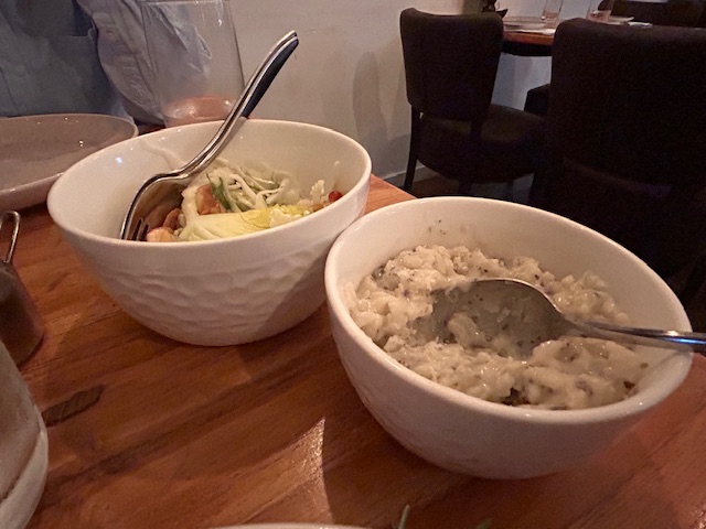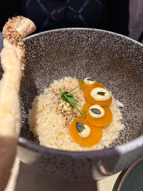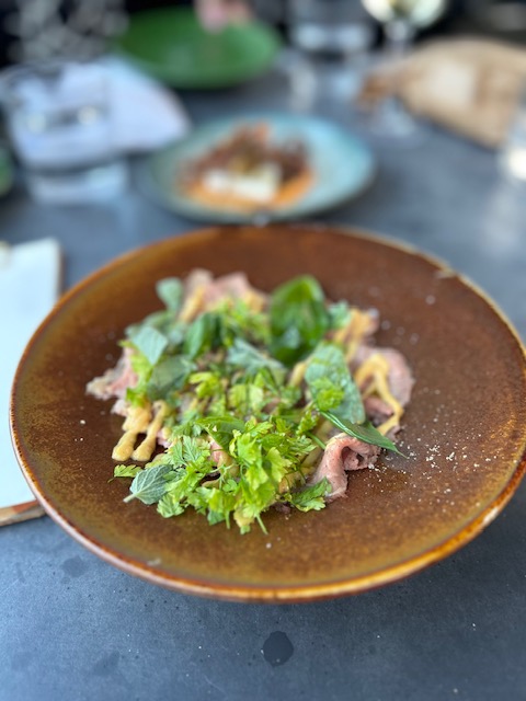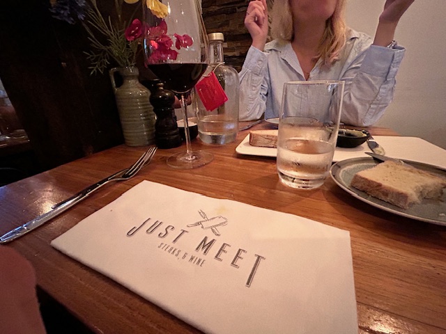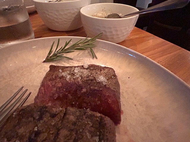 In diesem auf diversen Platformen hoch gelobten Steakhouse, findet der Gast eine reiche Auswahl an Zuschnitten des Rinds. Von Bavette, Entrecote, Filet natürlich und einem Burger. Auf den Teller heute Abend kommt das Flank Steak, vom australischen Wagyu, medium bestellt und medium-rare vom Koch auf dem Teller gebracht. Ok! Dazu gibt es ein Trüffel-Risotto, ok, dass etwas verkocht oder mit einem anderen Reiskorn als dem originären gekocht wurde. Der Salat mit etwas Kraut, Romana-Salat und Melonenstücken ist gelungen. Die offene Rotwein Auswahl reicht von deutschen, portugiesischen bis zu südamerikanischen Gewächsen. In Summe eine gute Auswahl wenn man zu zweit nicht mit einer Flasche enden möchte. Das vorab bestellte Sour-dough Bread ist aus der Sicht einer Brotnation weniger Sauerteig, die Butter Café de Paris hat eine Tendenz zur Convenience, was ich aber in heutigen Zeiten und einem Fachkräftemangel nicht allzusehr gewichten möchte. Anbei ein Rezept vom Feinschmecker, welches ich als gelungen erachte: Rezepte Café de Paris