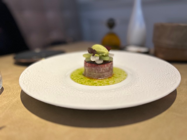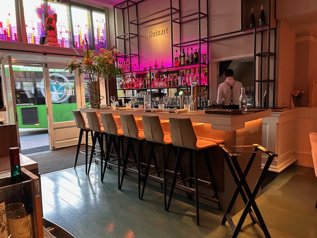 Der Service startet schoneinmal mit viel Schwung, höflich und erfrischend. Die Speisekarte bietet ein Mix aus der Region, bis zum Tandoori Hummer. Als Küchengruss serviert der Chef eine Gazpachovariation aus Gel und Espum, sowie eine knuprige Brickteigrolle mit Agaven-Gelee. Nach eingehendem Menucard Screening fällt die Entscheidung auf das Steak Tartare mit Jalapeno, auch hier ist wieder der mexikanische Einfluss erkennbar, Tomate und erfrischende Gurke. Dazu mundet ein Neuseeländischer Sauvignon Blanc, etwas hausgebackenes Brot zudem geräucherte Butter gereicht wird. Als Hauptgang wird ein halber europäischer Hummer aufgetischt, der in einer Tandorimarinade und mit etwas Blattspinat in der eigenen Schale serviert wird. Zudem ist er ausgezeichnet gegart und ein Glas Ruinart Champager NV ist die perfekte Wahl zu diesem erlesenen Krustentier. In den Niederlanden dürfen die Pommes mit Mayo dazu nicht fehlen, sowie ein kleiner grüner Salat. Das Kürbis Risotto mit Sandorn, welcher ein wenig Säure und Vitamin C dem Gericht verleiht, wird noch zusätzlich mit etwas Curry ergänzt. Für ein wenig Textur sorgt eine Sesam-Mohn Blätterteig Stange. Auch hier passt der Wein aus down under mit seiner leichten Säure und den tropischen Früchten gut dazu. Auf das Dessert wird heute verzichtet, als Petit Fours werden Haselnuss-Macarons und eineKaffeecreme-Schnitte kredenzt, der Espresso rundet den kulinarischen Abend ab. Insgesamt ein sehr gelungener, schmackhafter Besuch in einem zurecht erwähnten Restaurant im Gourmet-Führer, dem Guide Michelin.