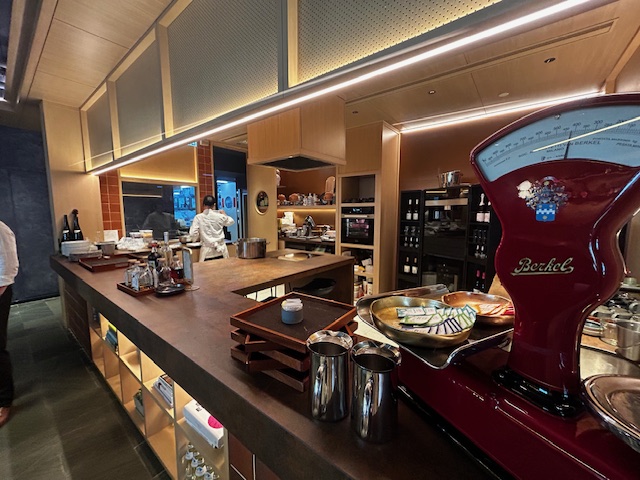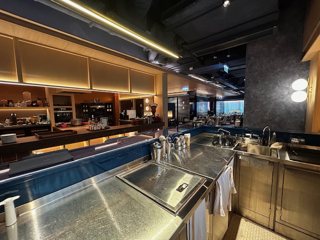 Heimat by Peter Find liegt zentral und googlemaps hilft einem die 8/F, 33 Wyndham Street zu finden. Allerdings geht es erstmal ein paar Meter den Berg hinauf, bei den Temperaturen die in der Stadt nunmal vorherrschen, ist das schon ein kleiner Workout. Vor dem Gebäude angekommen erfolgt eine erneute Orientierung und schließlich bringt einen der Fahrstuhl in den schön gestalteten Empfangsbereich des Restaurans. Die Bar zur rechten-, der Gastraum vor einem liegend und die Küche mit dem Chefstable zur linken Hand.