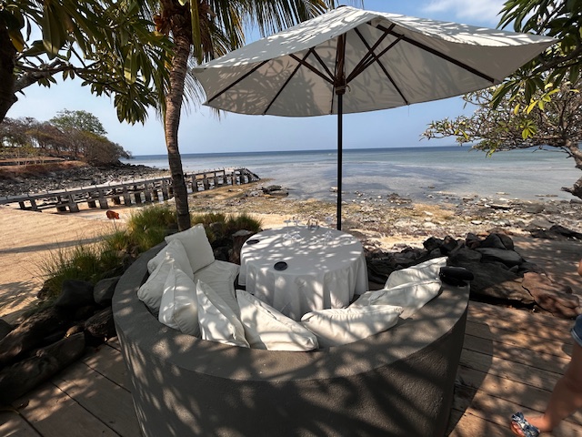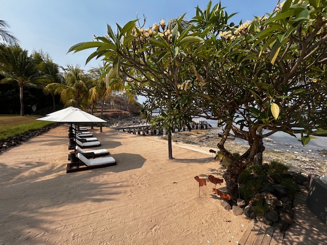 Die „The Lombok Lodge“ ist sicherlich eine schöne Herberge. Bei Google bekommt sie nochmal 2% mehr an Bewertung als das Oberoi. Leider öffnet man uns keine Tür der Zimmer um einen Eindruck zu erhalten. Der Strand ist nicht im Ansatz so schön wie nebenan, die Küche ist sehr gut, auf Basis des Mittagessens, ansonsten fühlt es sich richtig an, dass unsere Wahl auf die weltbekannte 5 Sterne Hotelkette gefallen ist.