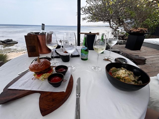 Ja dieser Name ist sicherlich auch in den deutschen Breitengraden weltbekannt, auf Lombok hat man sich entschieden auch eine zu haben. Getreu dem Namen hat man sich natürlich der italienischen Küche verschrieben, bietet von Pizza über Pasta auch weitere international Spezialitäten an, wie den nicht mehr von den Speisekarten wegzudenkenden Premium-Burger. In Indonesien sind traditionell die Weine extrem teuer, das hat weniger damit zu tun das hier der Transport oder die Qualität so zu Buche schlägt, als vielmehr ist es die Regierung die  mit dem Importzoll von 600 % Steuern an der Schraube dreht. Ja richtig, ein Betrag der selbst einen einfachen Pinot Grigio schnell 50 oder 60 Euro kosten lässt. Da die meisten Resort auch 21% local Tax und Servicepauschale nehmen, wird ein Burger und eine Pasta Vongole mit einer Flasche Wein gleich zu einem 120 Euro Lunch für 2 Personen-sei´s drum! Es geht halt auch mal ohne 🙂