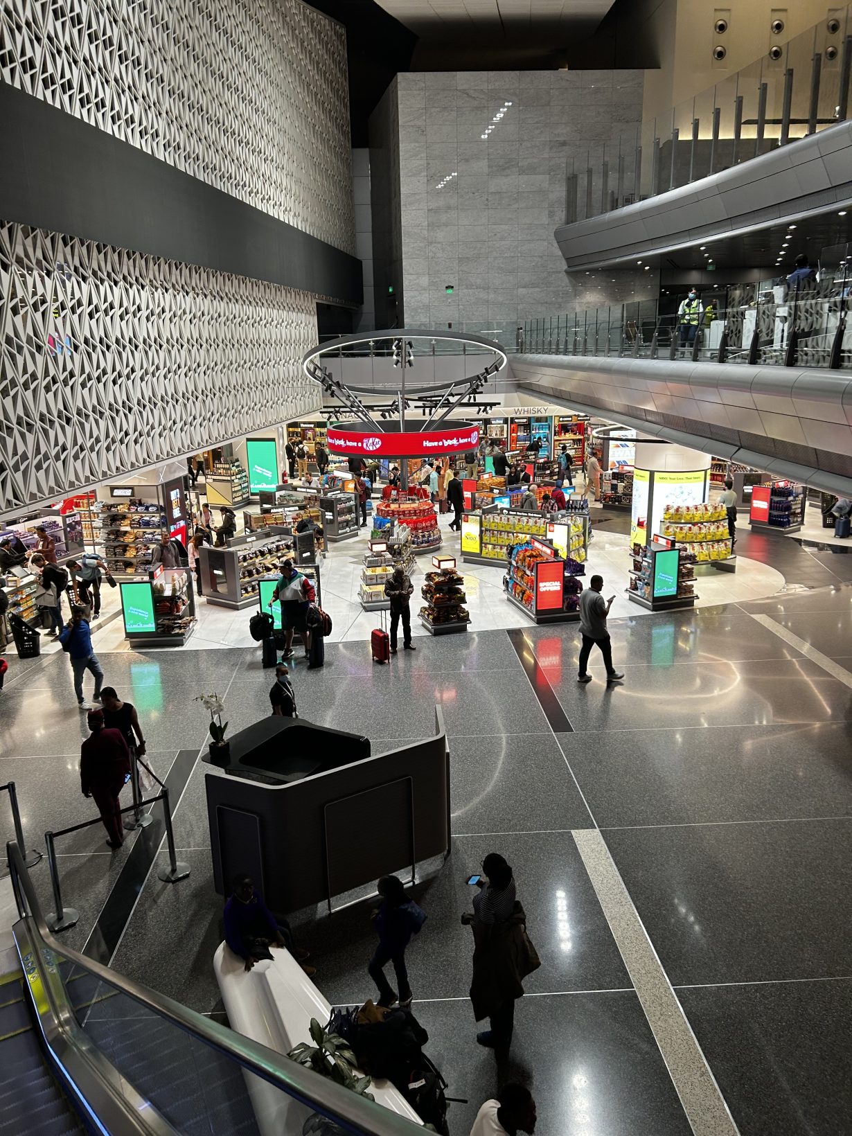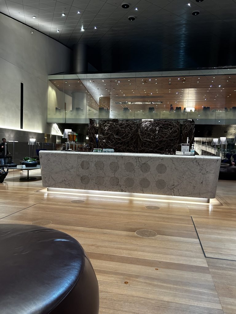Wer am Doha International ankommt und über ein Business Class Ticket oder einen Status im Verband der Oneworld Airlines verfügt, genießt das Privileg vor dem Abflug in dieser prunkvollen Lounge die Zeit zu verbringen. Selbst mit einem Economy Class Ticket ist hier gegen Bares der Zugang möglich, mein letzter Wissenstand hierzu sind 110 Euro. Mich verschlägt es beim Umsteigen aus Frankfurt kommend für 1.5 Stunden hierher, je nach Tageszeit kann es trotz aller Großzügigkeit recht voll werden. Wer sich nach einer Dusche sehnt, der sollte die Wartezeit entsprechend im Blick haben, denn diese kann mit bis zu 30 Minuten relativ lang werden. Die Lage dieser elitären Fläche befindet sich jenseits der Sicherheits- und Passkontrolle, mitten und oberhalb des Duty Free Paradieses. Über eine breite Rolltreppe gelangt der Gast in den Empfangsbereich, wo alle Zugangsberechtigungen geprüft werden. Ähnlich wie in der Safwa First Lounge fällt auf, dass architektonisch geklotzt und nicht gekleckert wurde. Egal ob viel Granit, edle Materialien und Wasserspiele, hier war definitiv beim Budget und im Bau einiges an finanzieller Luft vorhanden. Neben einem A la Carte- und Buffet Restaurant, gibt es eine Bar, Schlafräume und besagte Duschen, die für eine Erfrischung immer gut sind. Zudem wurde bei der Auswahl der Materialien immer der Ansatz verfolgt die arabische Kultur zu integrieren. Bronzefarbene steile, emporragende Wände, traditionelle Kalligraphie, welche den Weg weisen und die Elemente der Natur, schaffen einen Rückzugsort für den gestressten Reisenden nach oder vor einem Langstreckenflug. Für diese Entspannung sind die Sitzgelegenheiten vielfältig, vom klassischen Business Center, über Liegeräume bis hin zum chilligen Sofa ist alles dabei. Im Restaurant wird lokales, arabisches aber auch mediterranes Essen serviert. So vergeht die Zeit wie im Flug und da keine Ausrufe getätigt werden, sollte man immer seine Boardingtime im Blick haben.