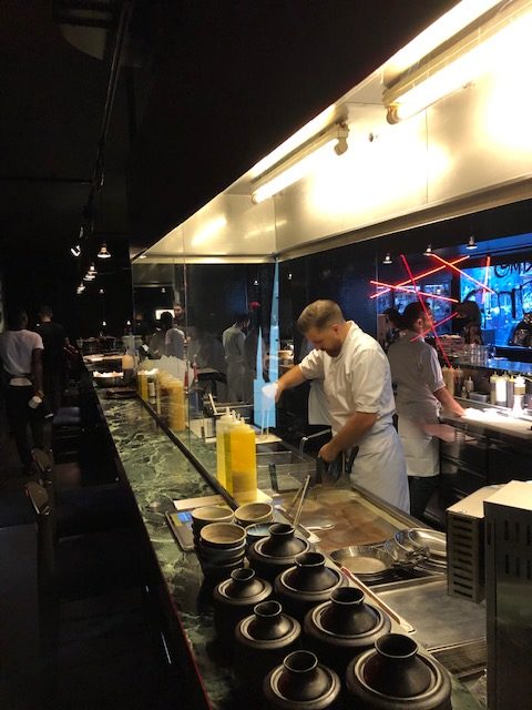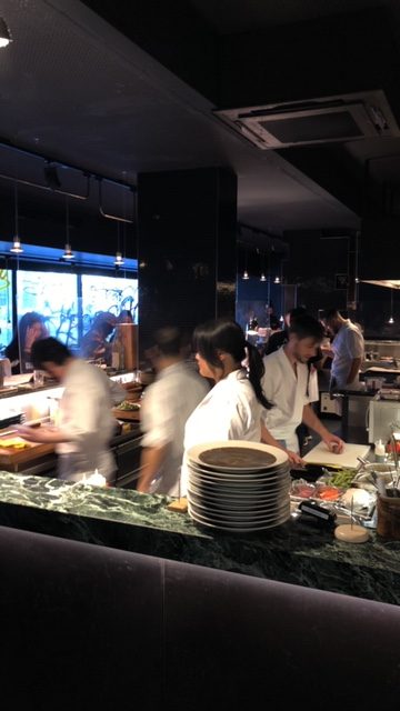 Am folgenden Tag interessieren mich diverse Trends in der Hauptstadt. So unterhält zum Beispiel The Duc Ngo das Ryotei 893 neben 9 anderen gastronomischen Betrieben. Die Küche ist Fernost geprägt, vornehmlich japanisch und der Restaurant-Auftritt ist von innen und außen betont „hipster“ gehalten. Die Küche ist als großer Mittelblock zentral im Restaurant integriert, die meisten Corona-Auflagen werden eingehalten und ich mache mich an die Bestellung. Der Romanasalat kommt mit super crispy frittierten Garnelen daher. Das Sushi ist allerdings eher von durchschnittlicher Qualität. Warum? Am norwegischen Lachs, er gilt eher als Preiseinstiegsqualität und Massenware, hängt noch das braune Fischfleisch, welches zwischen Filet und Haut sitzt. Das sollte auf dem Niveau schon „pariert“ und somit weggeschnitten sein, da es erheblich das Geschmacksbild trübt und tranig schmeckt. Auch das Krabbenfleisch scheint gepresst und ist eher wässrig, somit ergibt sich ein reduzierter Geschmack, in der normalerweise so hochwertigen Delikatesse. Die roh servierten Rinderfiletscheiben mit asiatischer Vinaigrette sind ein Versuch wert. Was mir hier ganz klar fehlt ist eine klare Produkt Philosophie! Mir fällt das Thema der Stunde überhaupt nicht auf, sprich Lebensmittel nachhaltig ausgewählt und in Szene gesetzt. Fazit: Kann man mal gemacht (besucht) haben, aber nichts was man nicht schon in anderen Städten gegessen hat, beziehungsweise bekommen kann. Dem Gastronom gebührt aber trotzdem mein tiefer Respekt für seinen Mut und seine tolle Karriere.