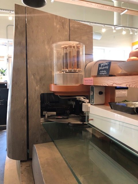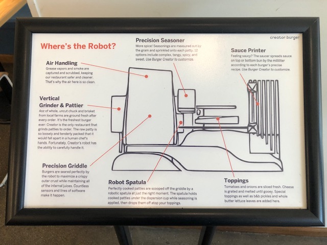 Zurück nach Nordamerika. Im Süden von San Francisco trifft man die Jungs von Creator Burger, einem QSR (Quick Service Restaurant) im Westlake Shopping Center. Dort angekommen beeindruckt der Mut für eine solche Entwicklung, auch wenn heute nicht der beste Tag ist, um einen Robot-Burger zu genießen. Die Technik will nicht so richtig wie mir erklärt wird, es stimmt die Abstimmung zwischen Brattemperatur, Dauer und Bestückung nicht. Der vorab per App bezahlte Burger erreicht leider nicht meinen Gaumen, dass ganze Projekt scheint an diesem Tag noch etwas Fehler anfällig, aber der Ansatz ist vollkommen richtig! Um ein Massen-Produkt wie Hamburger zu systematisieren braucht es in Zukunft immer weniger Menschen. Gleichzeitig ist das Gericht maximal mainstreamig und populär, dass die Skalierbarkeit der Technik auch für große Burger-Ketten absolut Sinn machen wird. https://www.creator.rest/