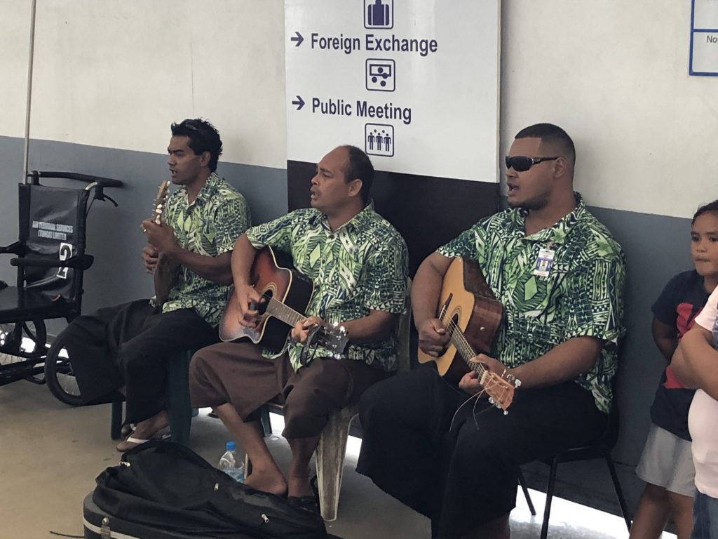 Warum eigentlich Tonga? Ich bin der Meinung das in jede Reise auch etwas Neues gehört. Es ist die fünfte Südsee Destination, mit 3 Flugstunden ist es ein Trip in einen Winkel der Erde, welcher akut in seinem Fortbestand durch den Klimawandel gefährdet ist. Während andere Südseeinseln vulkanischen Ursprungs sind besteht die Hauptinsel Tonga, mit Nuka a´lofa als Hauptstadt, mehrheitlich aus Kalksteinklippen, welche die Küstenlinie in ihrem Bestehen gut schützen. Vergeblich sucht man hier eine Ampel, alles geht gemächlich seinen Gang. Bei Avis Rental Car am Flughafen miete ich mir einen Kleinwagen, auf der Insel ist außerhalb der Ortschaften eine Höchstgeschwindigkeit von 70 km/h vorgeschrieben. Dabei merke ich das dieses Office keinerlei Digitalisierung erfahren hat, noch nicht einmal einen Computer. Es wird ein klares Signal der Entschleunigung ausgesendet, wenn man einmal von meinem Iphone absieht 🙂 . Am Ausgang des Flughafens sitzen 3 ältere Herren und empfangen die Gäste mit Südsee Klängen, so kann das Erlebnis in der Ferne gerne starten.