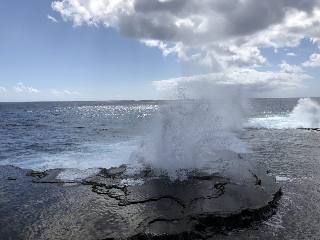 Warum eigentlich Tonga? Ich bin der Meinung das in jede Reise auch etwas Neues gehört. Es ist die fünfte Südsee Destination, mit 3 Flugstunden ist es ein Trip in einen Winkel der Erde, welcher akut in seinem Fortbestand durch den Klimawandel gefährdet ist. Während andere Südseeinseln vulkanischen Ursprungs sind besteht die Hauptinsel Tonga, mit Nuka a´lofa als Hauptstadt, mehrheitlich aus Kalksteinklippen, welche die Küstenlinie in ihrem Bestehen gut schützen. Vergeblich sucht man hier eine Ampel, alles geht gemächlich seinen Gang. Bei Avis Rental Car am Flughafen miete ich mir einen Kleinwagen, auf der Insel ist außerhalb der Ortschaften eine Höchstgeschwindigkeit von 70 km/h vorgeschrieben. Dabei merke ich das dieses Office keinerlei Digitalisierung erfahren hat, noch nicht einmal einen Computer. Es wird ein klares Signal der Entschleunigung ausgesendet, wenn man einmal von meinem Iphone absieht 🙂 . Am Ausgang des Flughafens sitzen 3 ältere Herren und empfangen die Gäste mit Südsee Klängen, so kann das Erlebnis in der Ferne gerne starten.