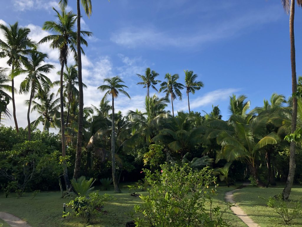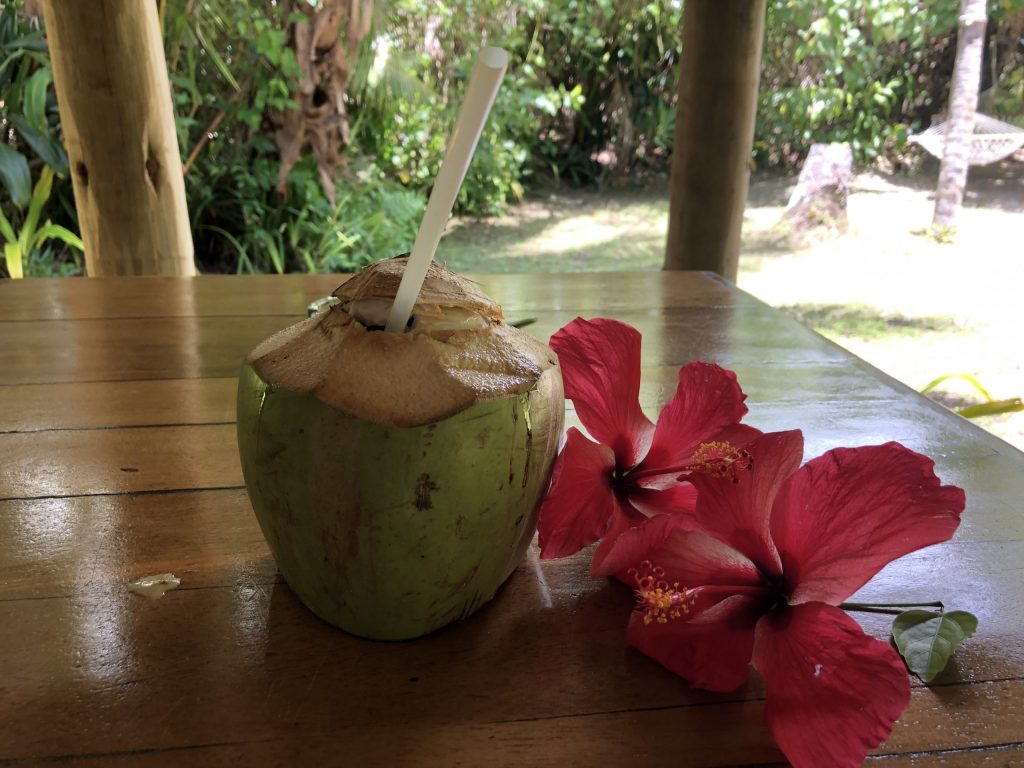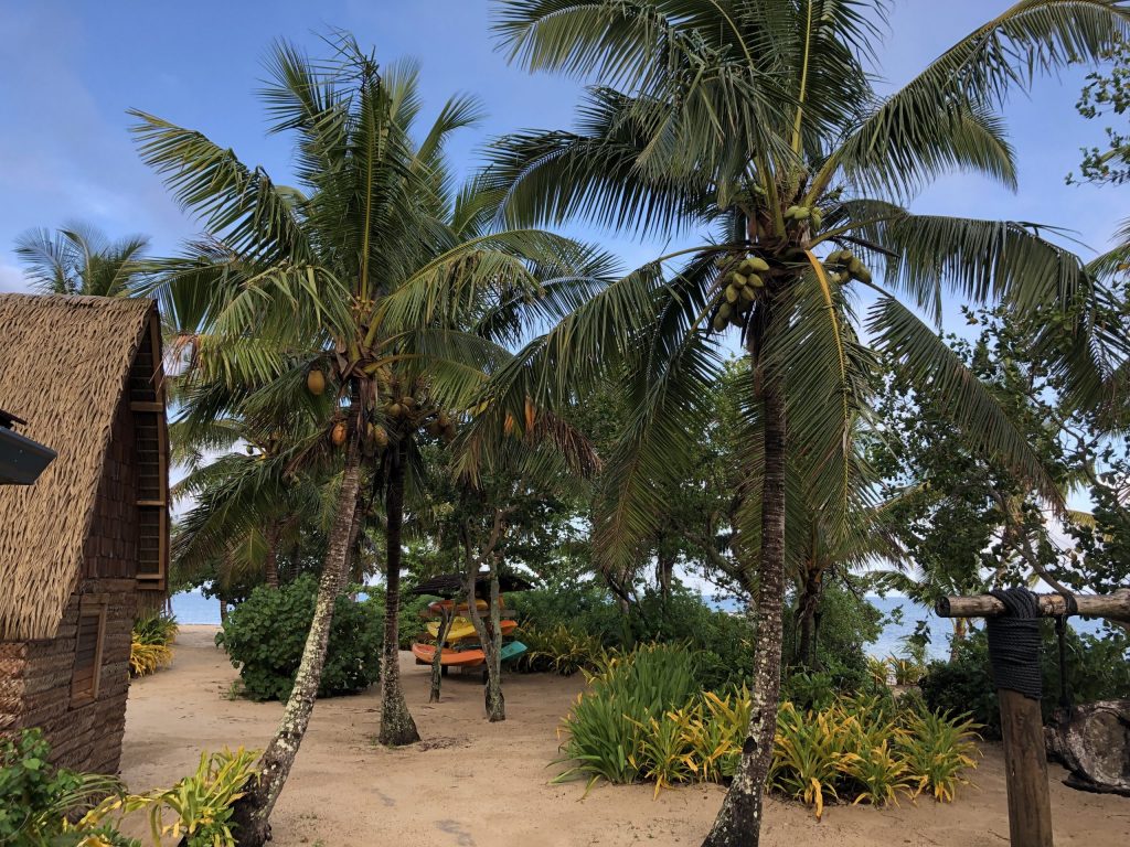 Die ersten 24 Stunden sind kurzweilig, von einem Gang um die Insel, einem Sauvignon Blanc aus Neuseeland und dem etwas zu trocken gebratenen Schwertfisch ausgefüllt. Bei einer niedrigen Internet Verfügbarkeit lässt es sich gut die mitgenommenen Magazine aus den Airport Lounges lesen, und der Abend endet früh bei Meeresrauschen und Vogelzwitschern. Tag 2 ist von heftigen Regenfällen bestimmt und vom Restaurantdeck lassen sich gut kleine Haie beobachten, die sogenannten Riffhaie. Sicherlich ein Grund warum ich diesmal nicht zum Schnorcheln tendiere, was in Thailand oder auch 2017 in Brasilien noch kein Thema war. Bevor an Tag 3 die Abreise ansteht laufe ich bei stabilen sommerlichen Temperaturen erneut um die Insel, in 15 Minuten hat man den vollen Rundumblick. Anschließend setze ich mich in das Kayak und paddel Richtung Riff. An Bord der Kita geht mit Moses meinem Kapitän bei ruhiger See nach Nuka a´lofa und weiter mit Airnz 273 Richtung Neuseeland.