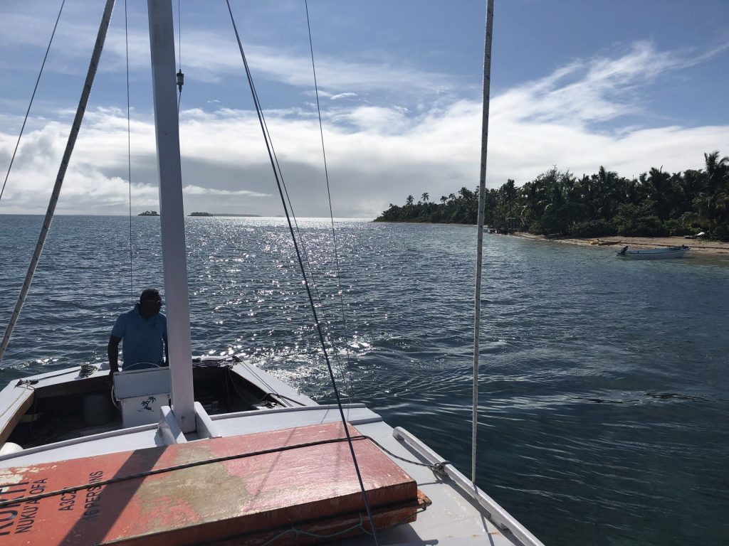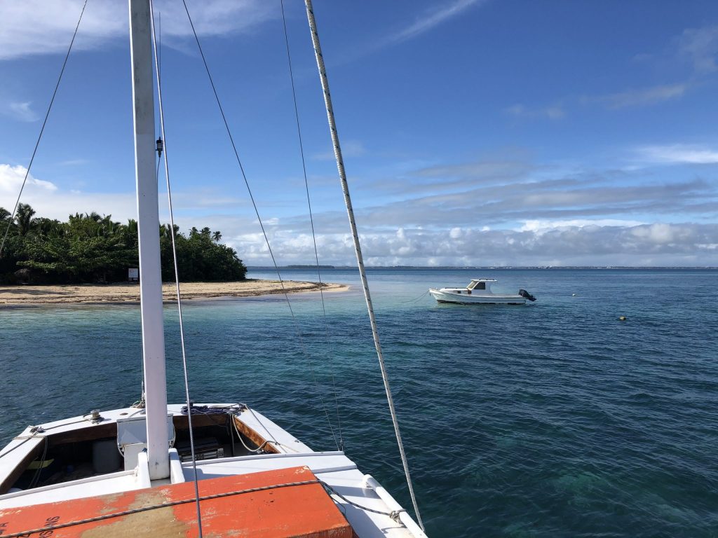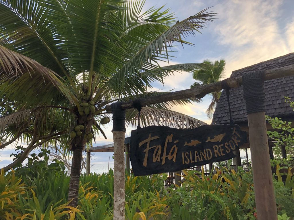 Eine Planung für 3 Nächte steht, die mit 17 Meilen im Durchmesser bestehende Hauptinsel bietet einige landschaftliche Eindrücke, etwas sightseeing bestimmt den restlichen Tag. Zu den südlich gelegenen blow holes ist die Fahrt kurzweilig und unter Palmenwind und Südseesonne bei offenen Fenstern ein Genuss. Im äußersten Westen der Insel lebt die Bevölkerung recht isoliert. Einfacherer in Erinnerung habe ich nur noch West-Samoa mit ihren Häusern in Form von Fale Bauten. (Fale sind Unterkünfte aus Holz welche an den Seiten offen sind). Außer ein paar wild streuenden Hunden, dem einen oder anderen Insulaner am Straßenrand, ist es eher die Kategorie „Landkreis nix los“. Nach nur einer Nacht im Seaview Hotel nehme ich das Segelschiff Richtung Fafa Island – das Motu erfüllt alle landschaftlichen Träume und Klischees vom Paradies. Mit etwas Wetterglück, es ist Regenzeit, eröffnen sich von der Seeseite kommend Einblicke auf Puderzuckerstrände mit tiefhängenden Palmen, wie auf jedem gängigem Fotomotiv dieser Region. Da in der Südsee immer ein Riff den Motus oder Inseln vorgelagert ist, ist das typische Wellenbaden eigentlich immer passé. Fafa Island Resort ist laut den Unterlagen des Betreibers ein Eco Resort. Warum dort immer noch zahlreich Plastikflaschen eingesetzt werden, empfinde ich als optimierbar.