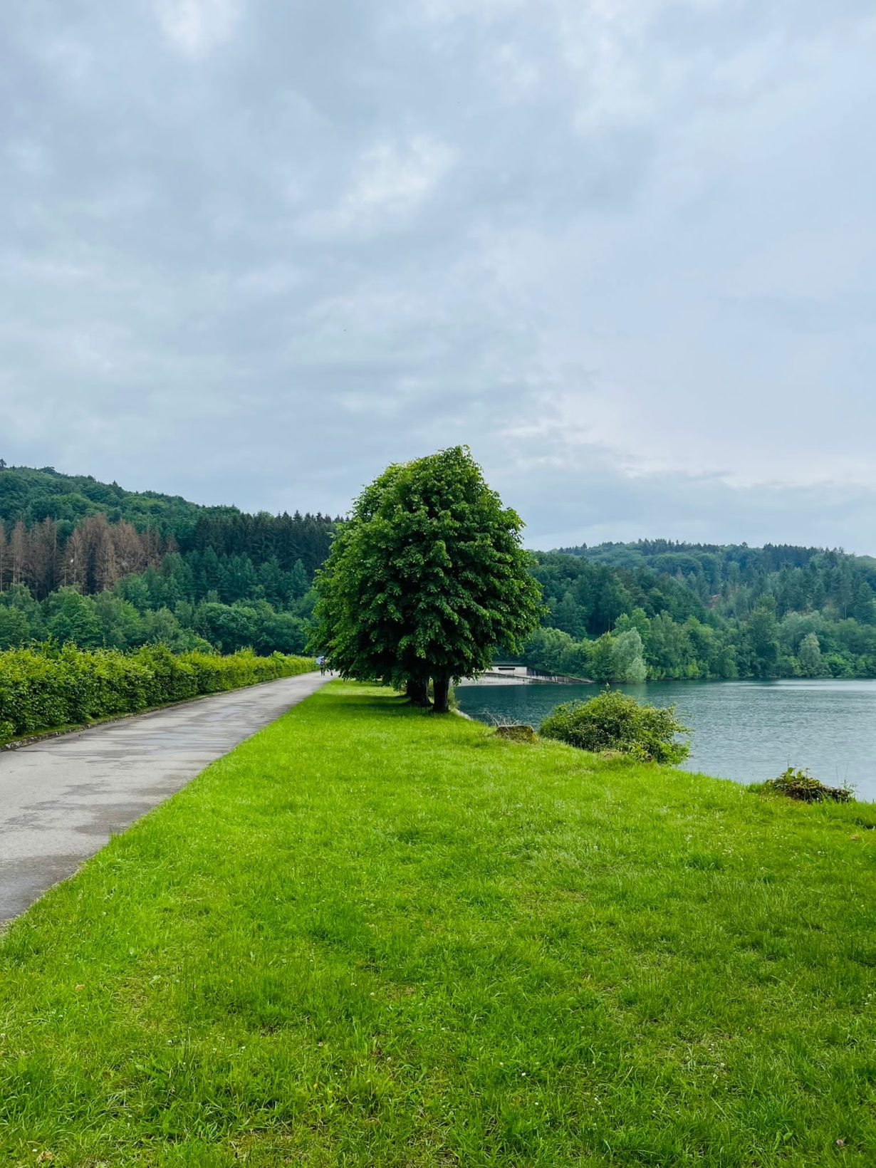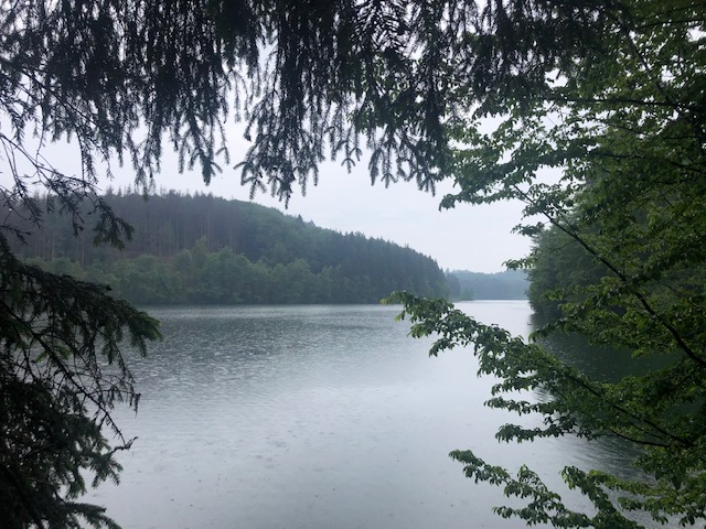 Bezüglich der Wege muss man auch erwähnen, dass trotz Regen diese gut begehbar sind. Nur wenig Menschen finden sich hier an diesem Sonntag ein, was ich nur auf das bescheidene Frühlingswetter zurückführen kann. Nach 11 Kilometern überquert man das Wasser an der Dhünntalsperre, 3 Stunden für schlussendlich 12,5 KM sind eine gute und mit Waldbaden sinnvoll verbrachte Zeit. Für den nächsten Besuch im bergischen Land gibt es noch weitere schöne Wanderungen, entweder am südlichen Teil der Sperre oder weiter nördlich im Sengbachtal, unweit von Solingen.
