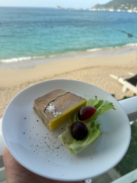 Passend dazu empfiehlt sich eine Gänse-Trüffel-Leber-Terrine, zugegeben etwas „old school“ aber 1 x im Jahrzehnt geht das mal.