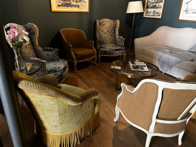 Einmal eingetreten ganz ohne Anmeldung, was nicht ungewöhnlich wäre, umgibt man sich in einem besonderen Haus. In der 3 Etage wo im Restaurant Stil an Tischen verkostet wird, geht es gediegen einher. Zur Auswahl stehen 4 Weine: